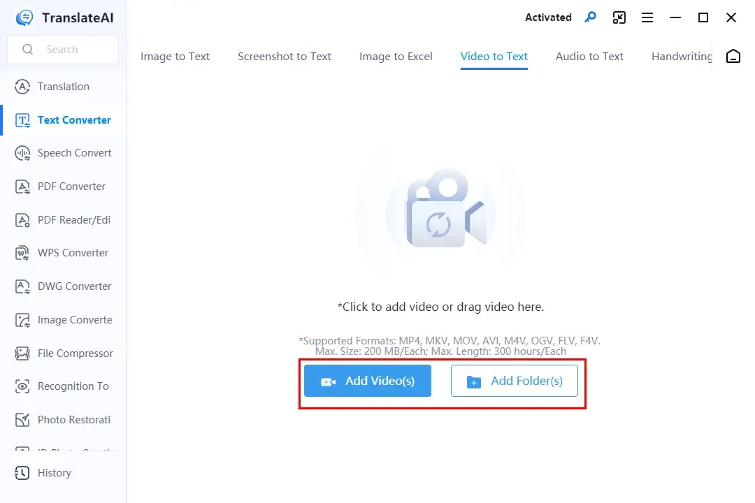 Step 1. Launch TranslateAI and then go to Text Converter > Video to Text.