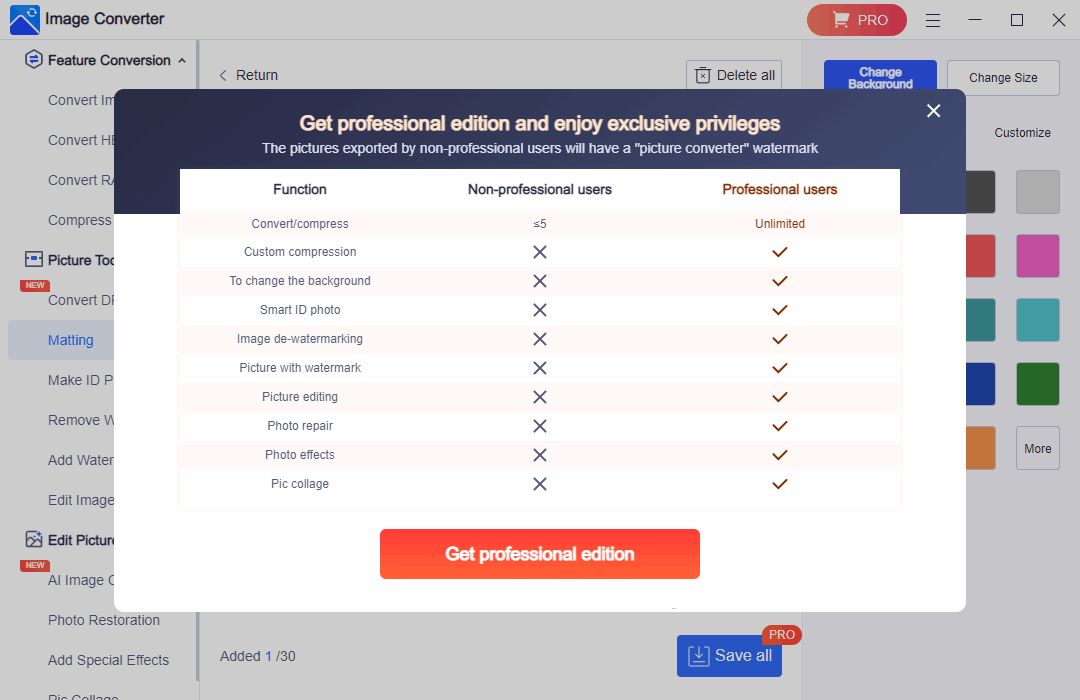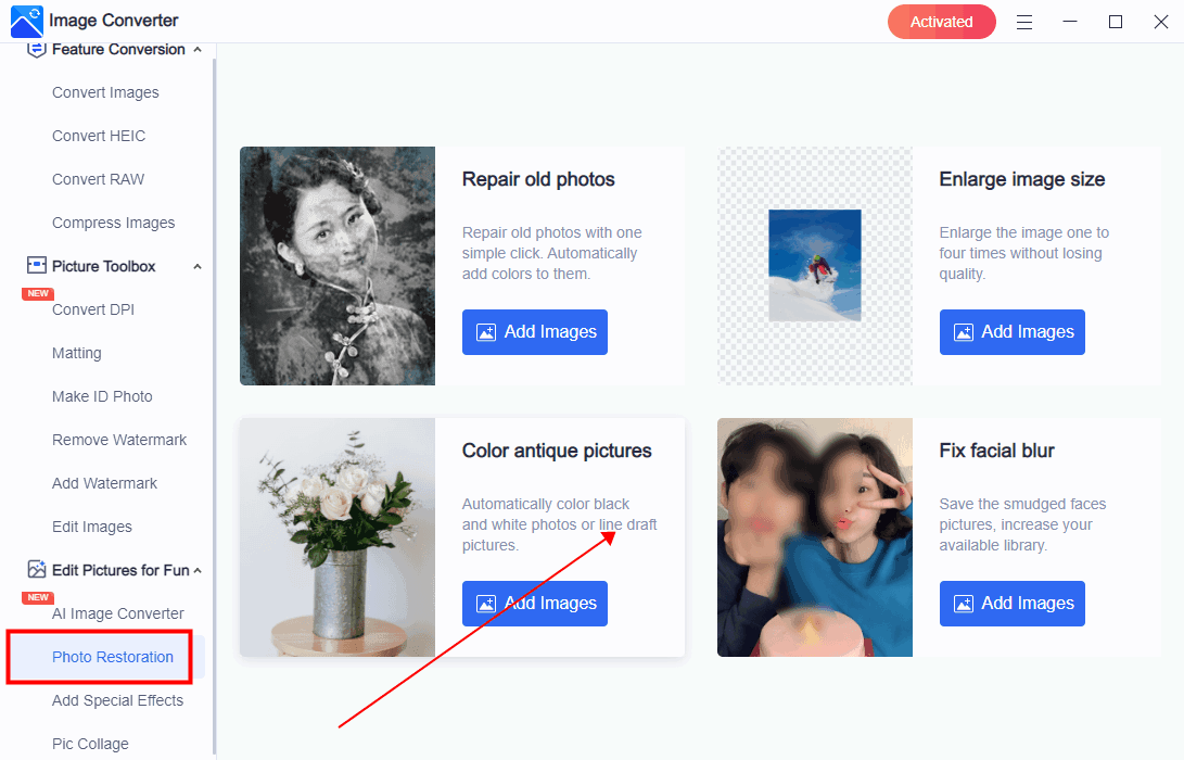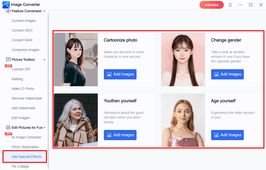 Unterstützte Bildfunktionen: WorkinTool Data Recovery Software unterstützt Bildkonvertierung, Komprimierung, DPIÄndern, Hintergrund ersetzen, Wasserzeichen anpassen, Bildbearbeitung, AI-BildGenerator, Fotowiederherstellung, Spezialeffekte, Bildcollage.