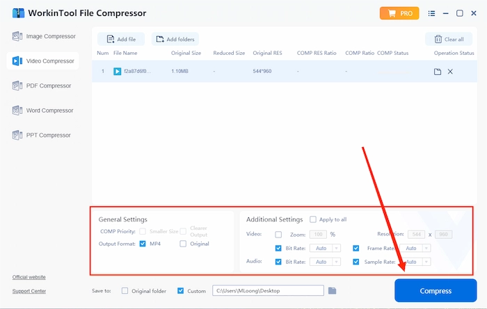 📣 Notice: As mentioned above, the user can choose two different compression modes according to the requirements. If you are new to this, General Settings are recommended. If there are specific requirements, then Addition Settings are recommended instead.