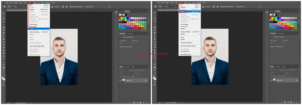 2). If your request includes background changing, you should click Select > Subject, then Select > Inverse to locate the background to adjust.