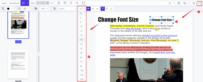 - Change Font Size: When your text is too small or large, not matching to the rest of PDF text, just click the drop-down menu of number to shrink/increase font size in PDF to a suitable scale.