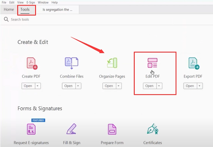- Step 1. Open your PDF file with Adobe Acrobat. Then go to Tools > Edit PDF.