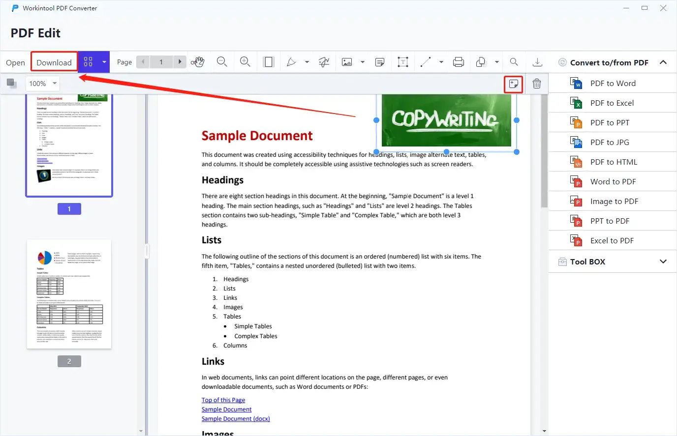 Only a few steps in WorkinTool will present you with a high-quality PDF with inserted images.