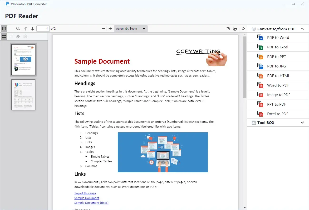 - Powerful: WorkinTool is more than a PDF reader. It also allows you to convert, merge, split, compress, rotate, protect, unlock, add watermark to and remove PDF pages. It proves to be a great help in the modern workplace and at school.