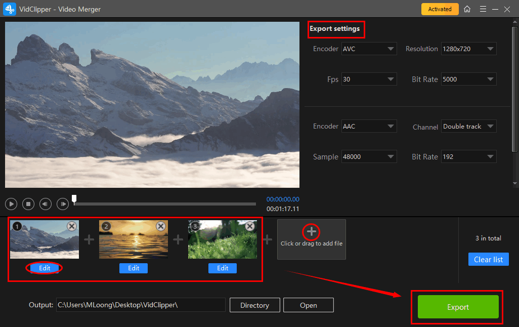 - Kliplerinizi almak için Dışa Aktar'a tıklayın.