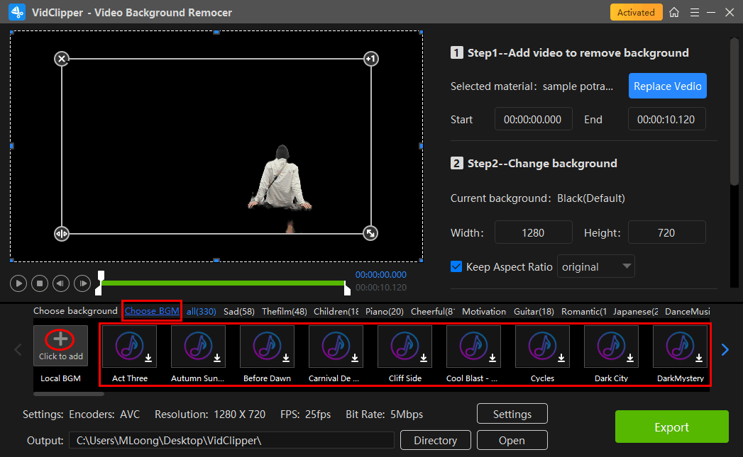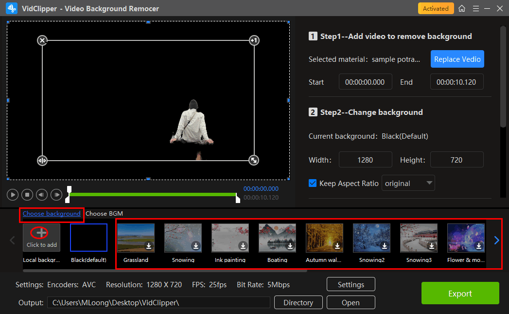 - Videonuzun arka planı aşağıdakilerin yardımıyla otomatik olarak kaldırılacaktır VidClipper'ın yapay zeka tabanlı teknolojisi.