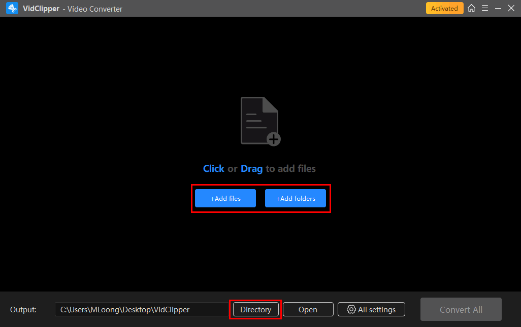 - Adım 2. Videolarınızı içe aktarmak için dosya eklemek için tıklayın veya sürükleyin ve ardından isterseniz çıktı dizini.