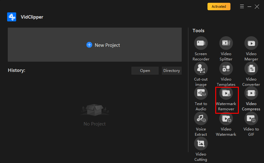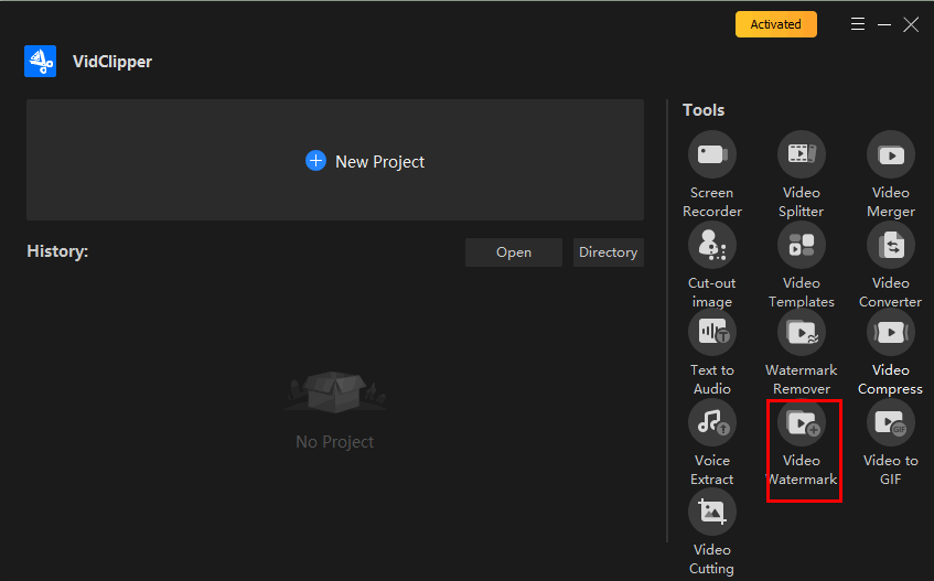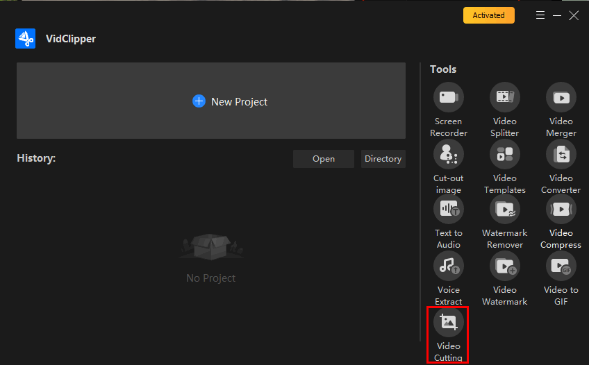- Üçüncü olarak, WorkinTool VidClipper'ı açın ve üstteki Etkinleştir simgesine tıklayın.