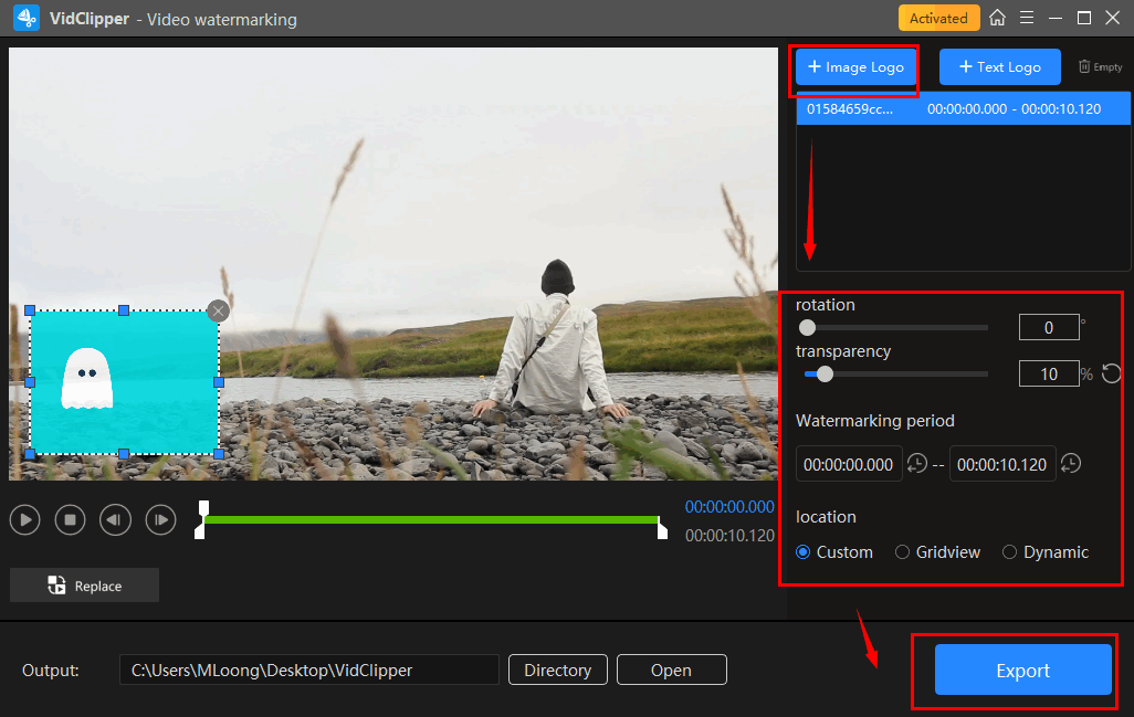 - Görüntü Filigranı: Görüntü Logosu'na tıklayın ve ayarları istediğiniz gibi değiştirin.