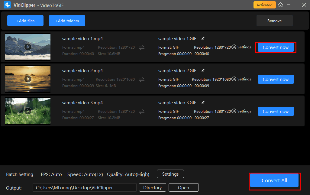 - Tümünü Dönüştür: Birden fazla videonuzu toplu olarak GIF dosyalarına dönüştürün.