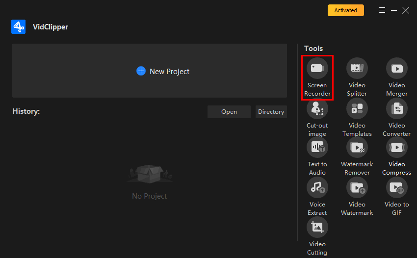 - Adım 1. WorkinTool VidClipper'ın sağ menüsünde Ekran Kaydedici'yi bulun.