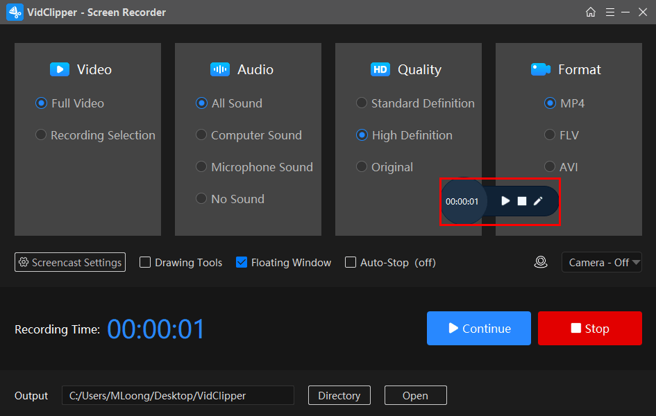 - Adım 3. Kayan penceredeki veya kayıt sayfasındaki Duraklat veya Durdur simgesine tıklayarak askıya alın veya sonlandırın ve kaydınızı kaydedin. (Kısayol tuşu: Duraklat/Sürdür--Alt+F1, Durdur--Alt+F3)