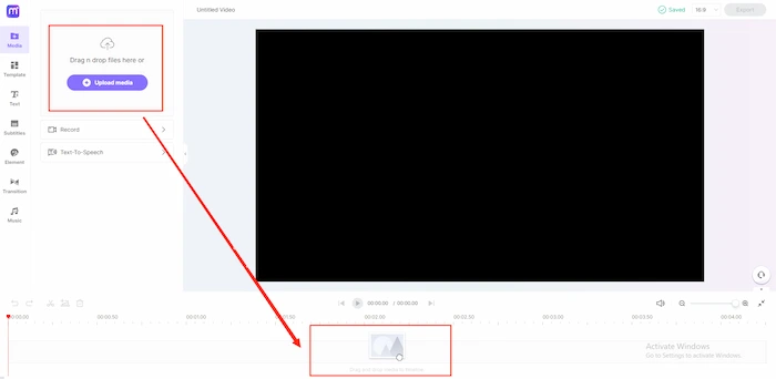 Step 1. Open the page on your browser and import your video, then drag the video to the editing bar below