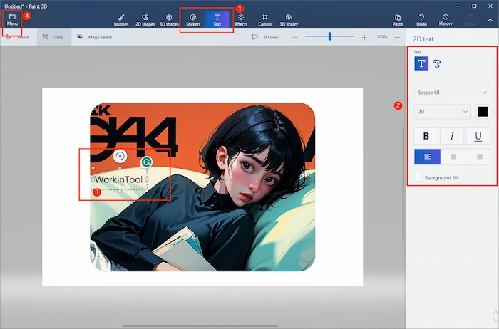 Instead of watermark makers, you can also use photo editors to add a signature or logo to copyright your photo. The built-in program called Paint 3D on Windows or other tools with your phone can aid you. However, take Paint 3D as an example; many features are not optional for you to customize the watermarks. At the same time, other tools will usually charge your license payment to export the edited photos. Also, some photo editors in the field cannot change the opacity of the text or image on the photo, which will affect the viewing experience.